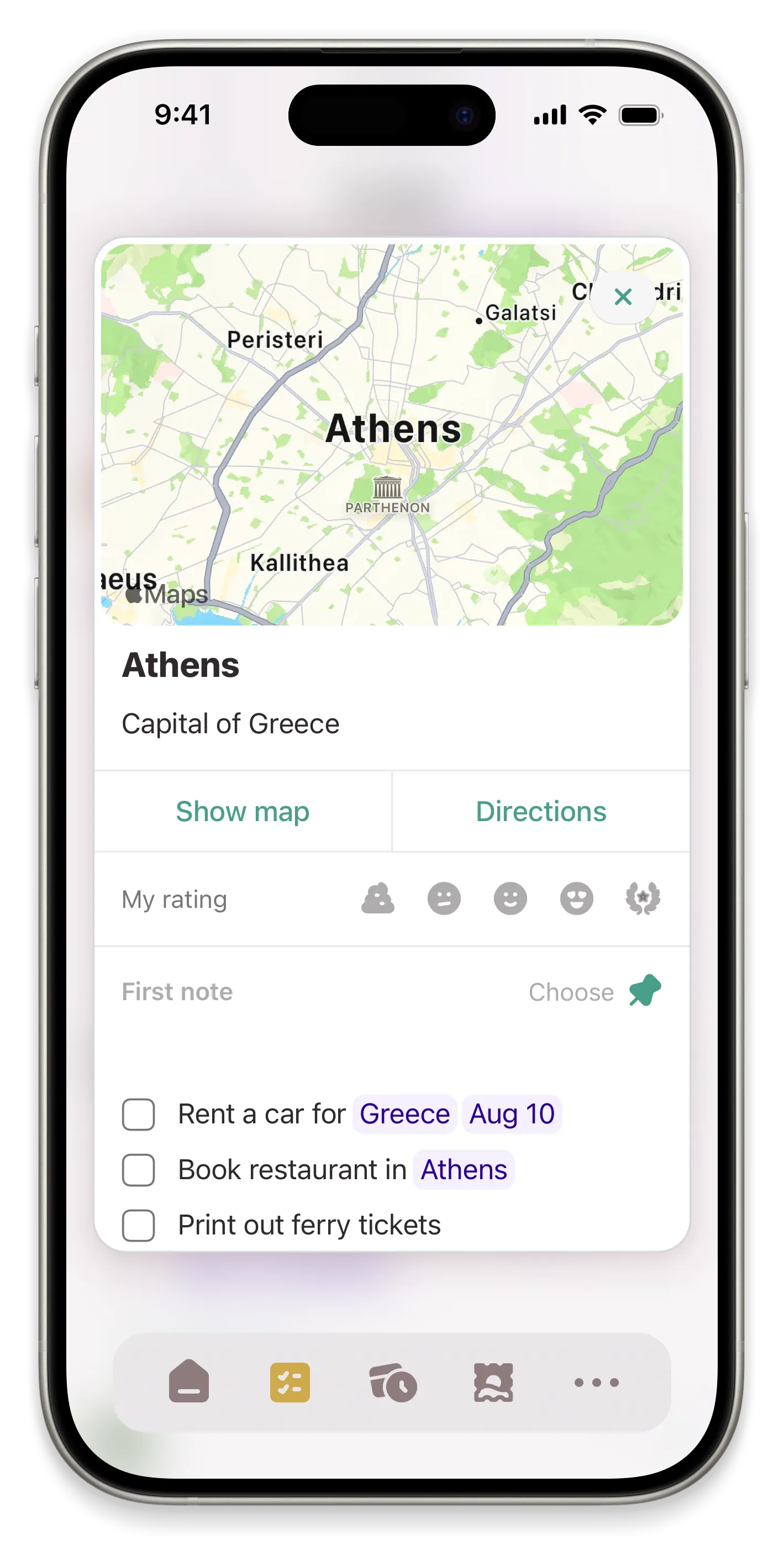 As you type, it quietly suggests tags for dates, places and contacts. Your notes stay plain, fast and private, but pop to life with contact cards, reminders, maps and more.
